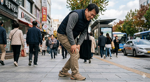 -장시간 앉아 있다가 일어날 때 느껴지는 관절의 뻣뻣함 및 통증.